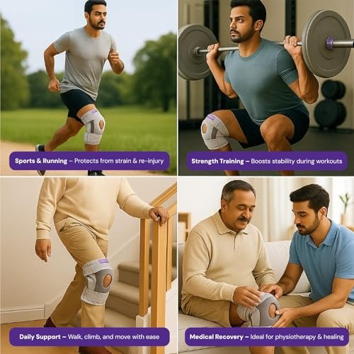 | Feature | MULTIFUNCTION AND UNISEX : The knee cap for men braces are suitable for both left and right thighs, universal for men and women, with some added stability and support, you can feel comfortable pushing your limits in exercise, knowing you’re less likely to suffer a painful twang or twist that could set your progress back. widely used in many sports such as knee support for gym squats, running, jogging, gym, weightlifting, basketball, volleyball, cross fit, tennis and more! |